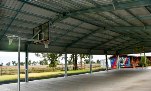 Omni Building Group was commissioned to design and construct a Covered Outdoor Learning Area (COLA) at Skillset Dubbo Campus, creating a sheltered space for year-round basketball and outdoor activities. This structure was specifically tailored to enhance the utility of the existing basketball court, ensuring a functional, weather-resistant environment for sports, assemblies, and recreational use.